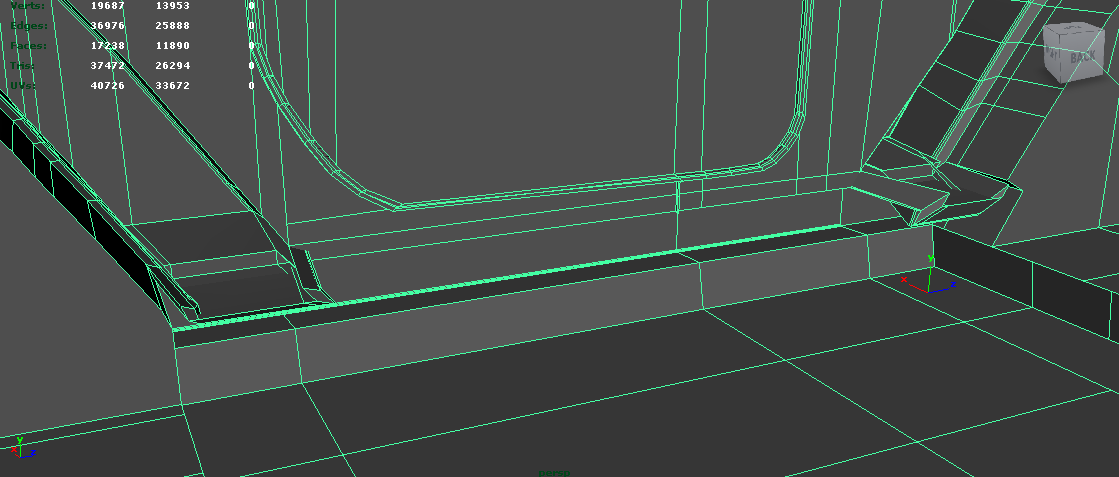 from the inside of the vehicle: shows the messy and problematic geometry that resulted from extrusions on the door creases