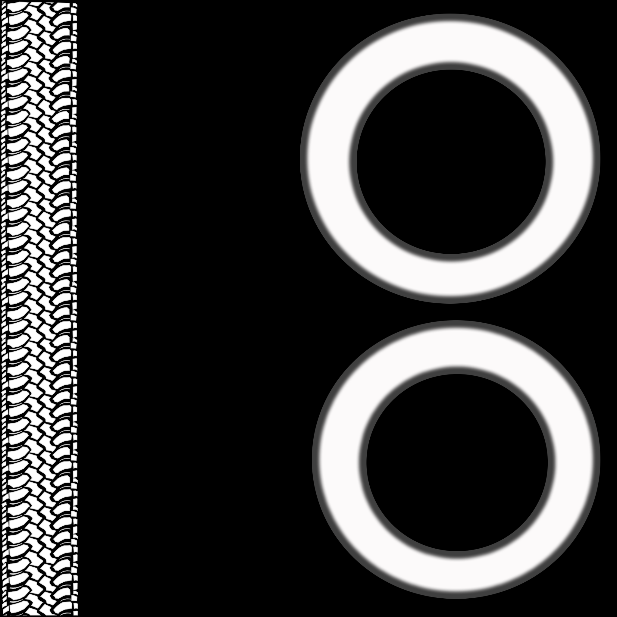 The displacement map of the tires in Photoshop, as laid out by the UV Texture Editor in Maya. The UV layout was taken as a “UV Snapshot” and brought into Photoshop to be detailed.