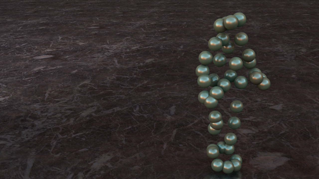 I also added an HDR image to assist with lighting, in addition to using a couple of area lights. Finally, I placed a ground plane beneath the sphere character and decided to apply a marble texture to it to compliment the pearlescent quality of the sphere shader. Shown below is the marble texture, courtesy of http://www.cgtextures.com, as well as the tileable “grunge” texture I used for the specular map, from the same website.